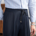 Unsere Orion Hose kombiniert maßgeschneiderte Eleganz mit entspanntem Komfort. Die feine, strukturierte Oberfläche und der moderne Kordelzugbund bieten eine Balance aus Lässigkeit und Präzision – ideal für Freizeit und elegante Anlässe.